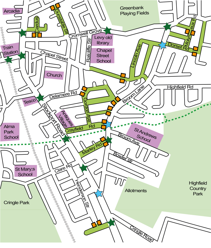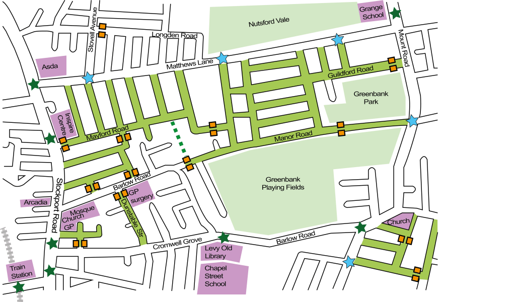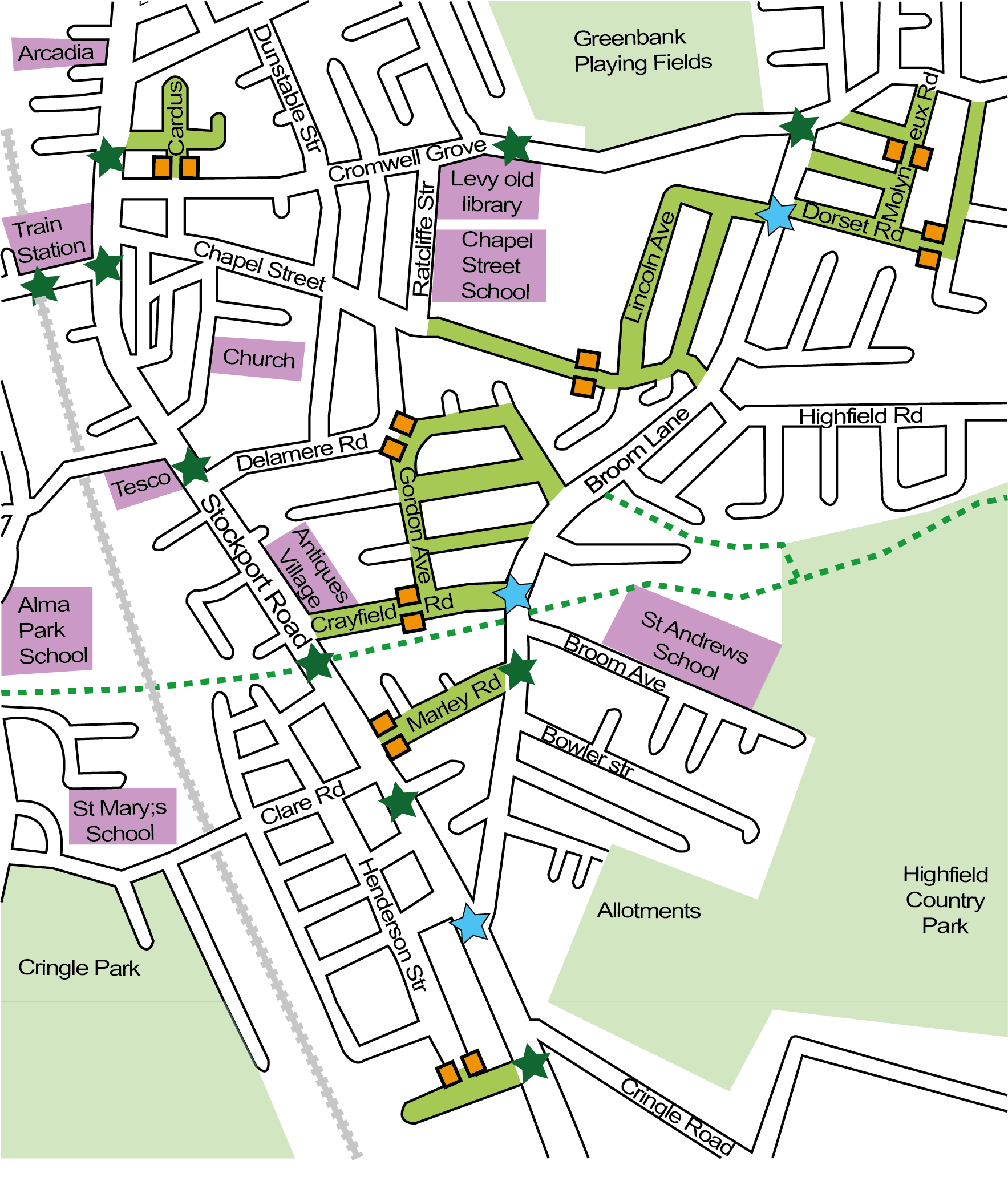 The scheme should not just be “zones” of low-traffic but connected safe walking and cycling routes across the whole of Levenshulme. We have to “Join the Dots” of the scheme.
