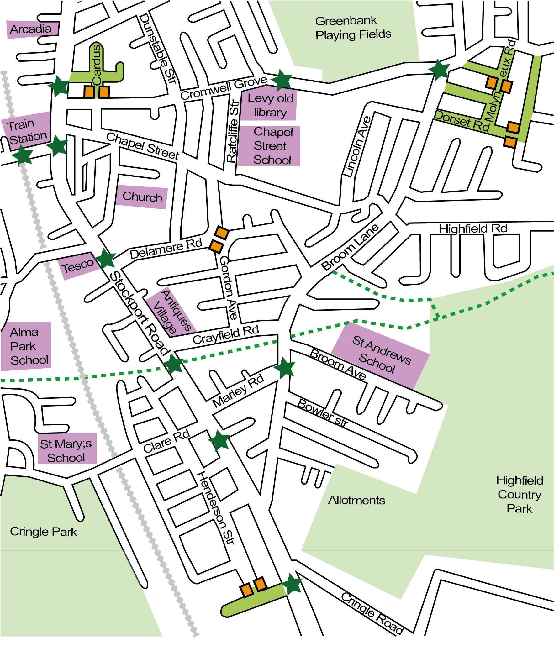 To see the suggestions for your area of Levenshulme, click on the relevant zone below: